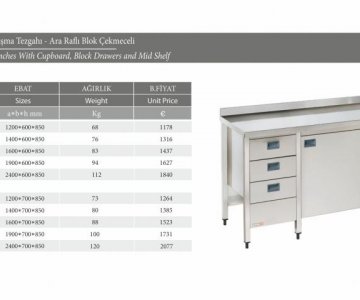 DOLAPLI ÇALIŞMA TEZGAHI ARA RAF BLOK ÇEKMECE 120*60*85